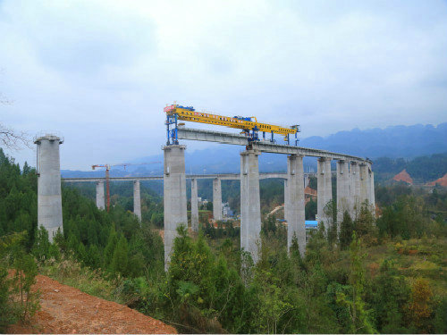 據(jù)項(xiàng)目負(fù)責(zé)人介紹,該項(xiàng)目所承擔(dān)的鋪軌架橋任務(wù)完全不同于地勢平坦的平原區(qū)段。武陵山區(qū)地形條件復(fù)雜,常年大霧彌漫,墩臺(tái)普遍偏高,橋梁分散,且部分橋體橫跨渝東南地區(qū)的鄉(xiāng)村及便道,無形之間給橋梁運(yùn)輸和架設(shè)工作帶來了重重困難。
