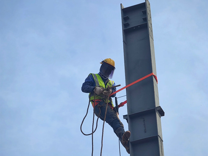安裝鋼筋場大棚立柱 程啟兵攝