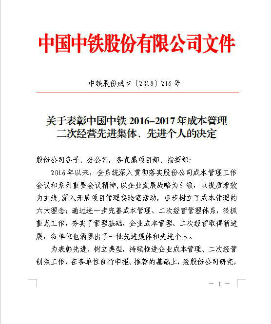 近日,中國中鐵股份有限公司下發(fā)《關(guān)于表彰中國中鐵2016-2017年成本管理二次經(jīng)營先進集體、先進個人的決定》通知,中鐵武漢電氣化局廣州分公公司湛江東海島項目部榮獲“中國中鐵2016-2017年二次經(jīng)營創(chuàng)效優(yōu)秀項目部”稱號。