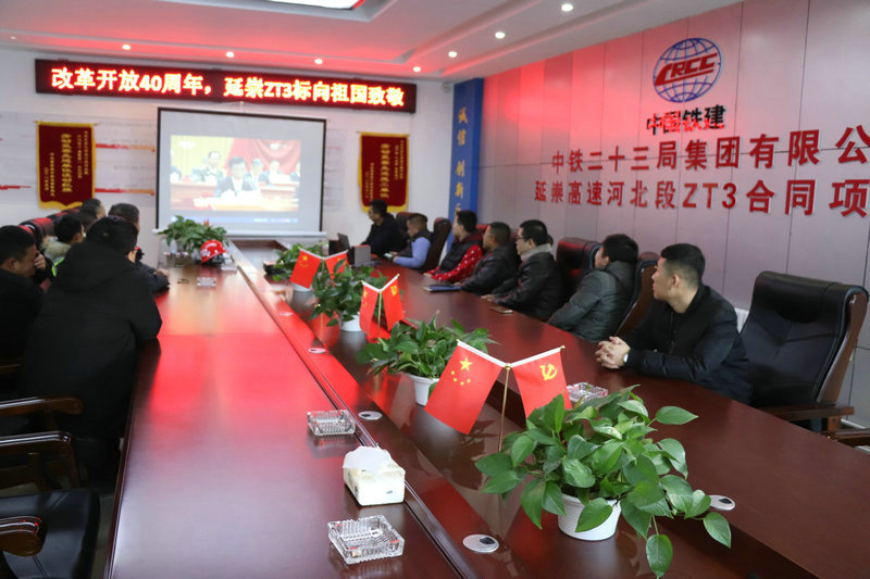四十年前的今天,以黨的十一屆三中全會為起點,中國開始了偉大的改革開放。今天,在人民大會堂,慶祝改革開放四十周年大會隆重舉行,習近平總書記發(fā)表重要講話,回顧改革開放四十年的光輝歷程,深刻總結(jié)改革開放的寶貴經(jīng)驗。12月18日上午十點,中鐵二十三局延崇項目部全體職工熱切關(guān)注此次直播,項目部領(lǐng)導(dǎo)班子成員第一時間帶頭在會議室通過多種途徑、多種形式觀看大會直播盛況。