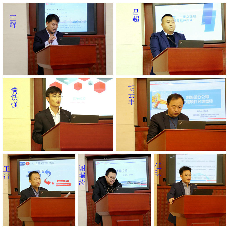 此次從初評(píng)中脫穎而出參加競(jìng)聘大會(huì)的7名同志分別是王輝、呂超、滿鐵強(qiáng)、胡云峰、王冶、謝瑞濤、任琪。他們目前都是各自項(xiàng)目的班子成員,在生產(chǎn)副經(jīng)理、總工程師、制梁場(chǎng)場(chǎng)長(zhǎng)等崗位任職。“我競(jìng)聘的優(yōu)勢(shì)是……”“如果我競(jìng)聘成功,我的工作思路是這樣的……”他們分別從任職履歷、工作經(jīng)驗(yàn)、工作思路和規(guī)劃等方面進(jìn)行競(jìng)聘闡述。每名競(jìng)聘者闡述完畢后在座評(píng)委針對(duì)人員管理、隊(duì)伍管理等具體問(wèn)題進(jìn)行提問(wèn),由競(jìng)聘者予以作答。