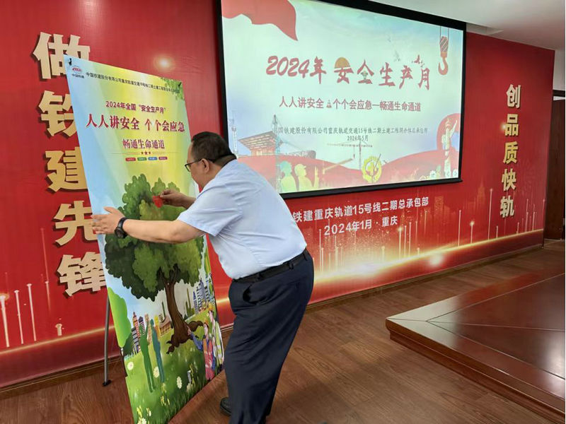 為深入學(xué)習(xí)貫徹習(xí)近平總書記關(guān)于安全生產(chǎn)重要論述和重要指示批示精神,扎實(shí)推進(jìn)安全生產(chǎn)月各項(xiàng)工作,5月30日,中鐵建重慶軌道交通十五號(hào)線二期總承包部舉行以圍繞“人人講安全、個(gè)個(gè)會(huì)應(yīng)急—-暢通生命通道”主題的2024年安全生產(chǎn)月活動(dòng)啟動(dòng)儀式。