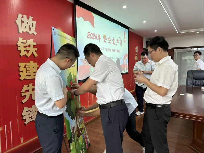 會(huì)上,總承包部安全總監(jiān)李志鋒宣讀了總承包部《關(guān)于開展2024 年“安全生產(chǎn)月”活動(dòng)的通知》,副指揮長李燕斌領(lǐng)讀安全生產(chǎn)承諾,觀看了2024年全國安全生產(chǎn)月特別報(bào)道——《生命通道》警示片。隨后,與會(huì)人員共同寫下安全心語感言,把美好的心語化作一顆顆寓意平安的果實(shí),掛上象征安全的平安樹,愿安全就像一棵大樹,枝繁葉茂靠大家共守護(hù)。