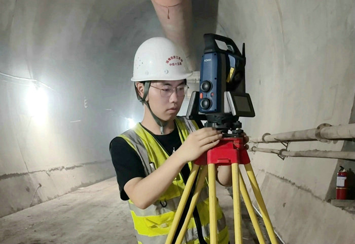 黃東琦在隧道深處測(cè)量 張彩霞攝