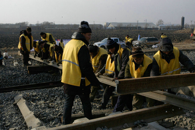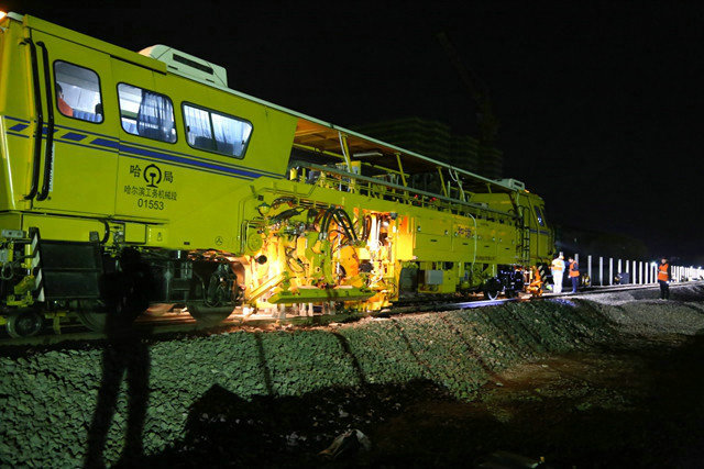 時間能磨平人的棱角,也能磨滅阻礙。隨著施工進度的不斷推進,哈佳項目部迎來了8至12線關(guān)鍵的工期節(jié)點,2017年4月28日,近600名作業(yè)人員、近40臺大小設(shè)備一齊沖進預(yù)定線路,人工抬軌的號子聲、鐵鍬砟石的碰撞聲、機械設(shè)備的轟鳴聲此起彼伏。斷軌飛濺的鋼花、作業(yè)工人衣服上的熒光帶、防護員手里的探照燈在夜空中照亮了線路,在爭分奪秒的緊張搶戰(zhàn)氣息中平添了一抹建筑工人獨有的韻味,經(jīng)過15小時30分的激烈鏖戰(zhàn),佳木斯站場新建8至12線工程順利完成轉(zhuǎn)線施工任務(wù)。時間悄悄地走,佳木斯站場全線開通時間也逐漸的接近。6—7線于2017年11月30日順利開通,2線于2018年12月16日順利開通。