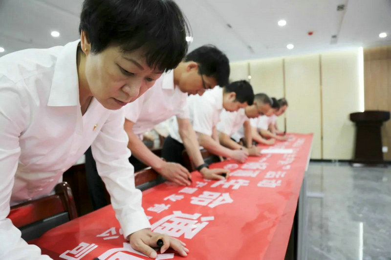 中鐵中產(chǎn)置業(yè)公司按照集團(tuán)公司和股份公司的統(tǒng)一部署,組織員工進(jìn)行莊嚴(yán)宣誓,在宣誓活動之后中鐵中產(chǎn)置業(yè)公司員工進(jìn)行了安全生產(chǎn)月簽名儀式。