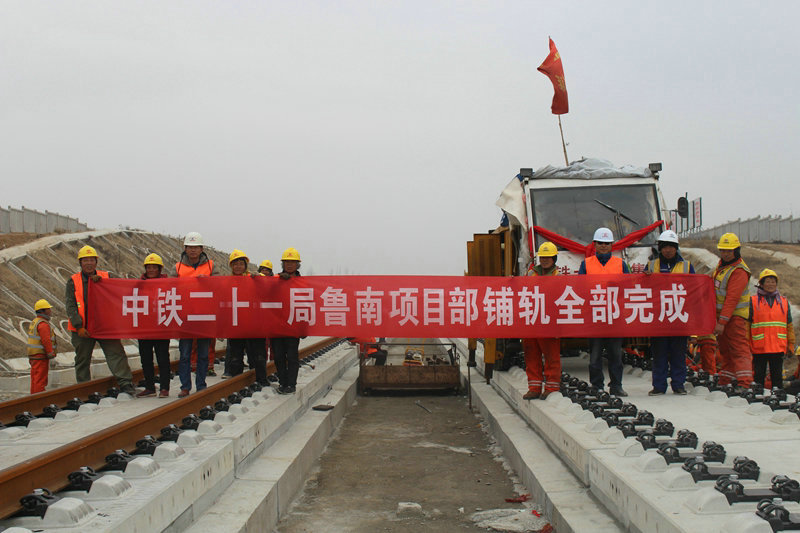 本網(wǎng)臨沂訊(通訊員 于值唯)“500米長(zhǎng)的無(wú)縫鋼軌在牽引車的幫助下緩緩落在承軌臺(tái)上,20余名工人對(duì)鋼軌位置進(jìn)行矯正,兩臺(tái)螺絲機(jī)對(duì)扣件螺絲進(jìn)行安裝……經(jīng)過(guò)40分鐘的流水作業(yè),長(zhǎng)鋼軌順利鋪設(shè)完成。”12月20日下午15時(shí),隨著鋼軌牽引車順利駛出魯南高鐵DK219+340.55處路基,標(biāo)志著由中鐵二十一局承建的魯南高鐵二標(biāo)管段內(nèi)47.805公里鋪軌施工全部完成。