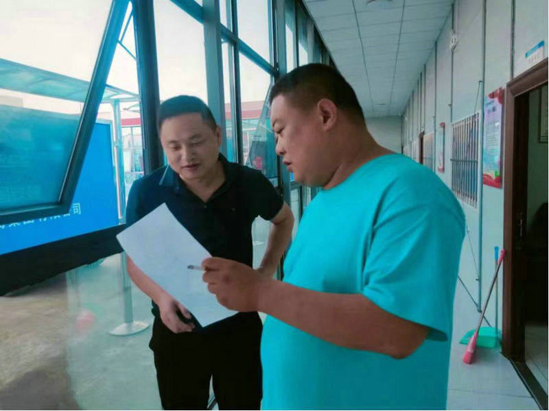炊管人員馬許濤向項目書記韓崇生匯報新菜譜新食譜