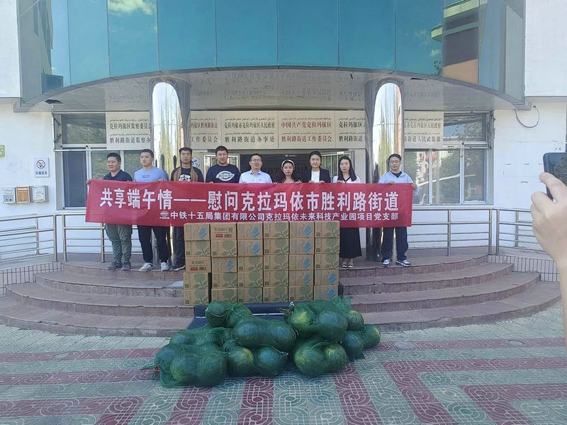 鐵路工程建設網(wǎng)訊(通訊員 王詩迪 高歌))近日,為加強項目與社區(qū)的聯(lián)系,表達項目對社區(qū)居民的關心與支持,中鐵十五局克拉瑪依未來科技產(chǎn)業(yè)園項目黨支部開展端午系列慰問活動,走訪了克拉瑪依市克拉瑪依區(qū)勝利路街道及街道下設石油工人社區(qū)、長征社區(qū)。