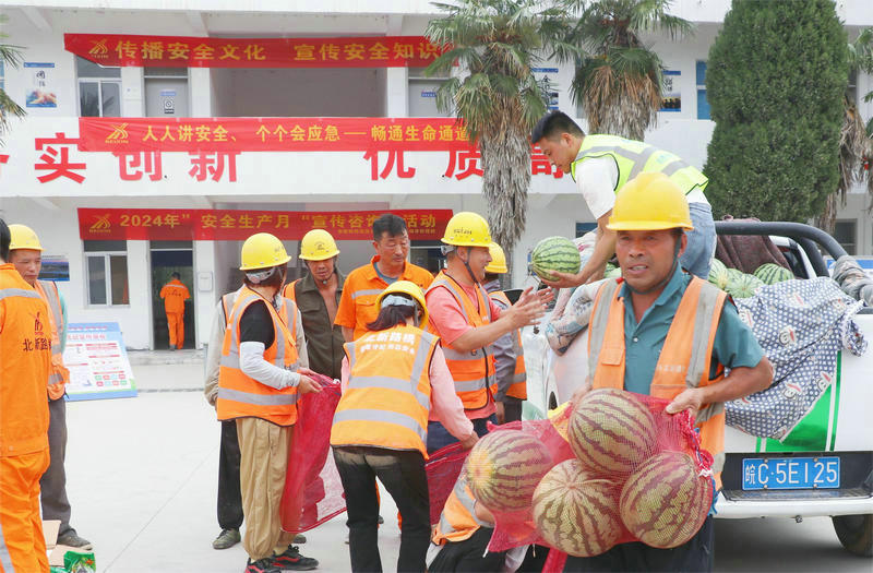一個個甘甜的西瓜,一顆顆清香的綠豆,承載了項目部對一線工人的深深關(guān)懷,滋潤著每個人的心田。“雖然高溫天氣下的工作環(huán)境相對艱苦,但項目部的關(guān)心和支持,讓這個夏季不僅有清涼,更有一份甜甜的關(guān)愛。”一線工人們抱著西瓜,臉上洋溢著感激與振奮的笑容。