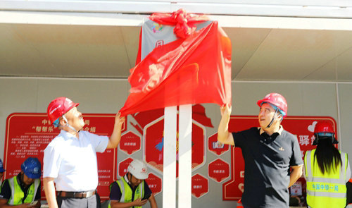 中鐵一局工會(huì)副主席張國(guó)強(qiáng),建安公司工會(huì)主席、副總經(jīng)理?xiàng)顤|雷共同為“同心驛站”揭牌。