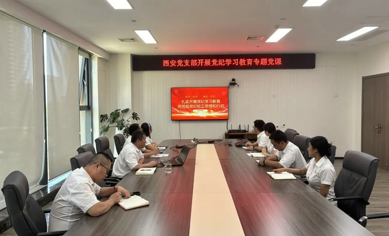 6月26日,西安黨支部組織召開黨紀學習教育專題黨課,支部黨員參加學習。