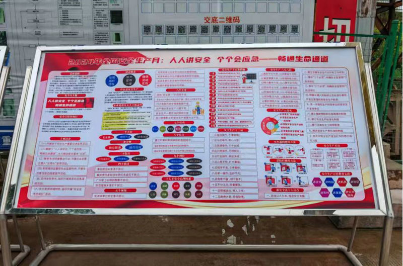 項(xiàng)目自上而下廣泛深入的開展宣傳、教育工作。在人員經(jīng)過的通道處、會議室、施工現(xiàn)場及辦公區(qū)和工人生活區(qū)顯著位置,設(shè)置“安全生產(chǎn)月”專題展板及掛設(shè)各類安全宣傳牌,讓全體作業(yè)人員感受到“安全生產(chǎn)月”濃厚的文化氛圍。用輿論導(dǎo)向激發(fā)項(xiàng)目部職工及施工人員積極參與熱情,讓他們牢固樹立“安全第一”的思想,把規(guī)范自己的行為、注重安全生產(chǎn)演變?yōu)樽杂X活動。讓全體作業(yè)人員感受到“安全生產(chǎn)月”濃厚的文化氛圍,拉開了“安全生產(chǎn)月”活動的序幕。