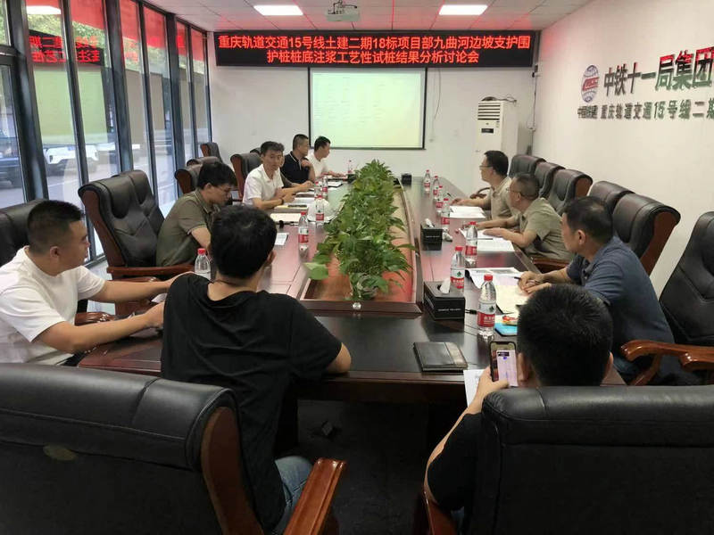 7月4日下午,中鐵建重慶投資集團軌道交通15號線二期土建工程總承包部18標項目部組織建設單位、設計單位、地勘單位、監(jiān)理單位、第三方監(jiān)控量測單位、施工總承包單位和施工單位在禮學路站現(xiàn)場會議室召開九曲河主變電所邊坡灌注樁樁底注漿試驗結(jié)果研討會,經(jīng)研討小組現(xiàn)場踏勘,參考類似施工經(jīng)驗和相關規(guī)范、資料,結(jié)合各單位的意見和第三方監(jiān)控量測單位試驗結(jié)果,建設單位確認九曲河主變電所邊坡灌注樁樁底注漿試驗結(jié)果滿足設計要求,準予九曲河主變電所邊坡灌注樁樁底注漿按照試驗樁參數(shù)組織樁底注漿施工。