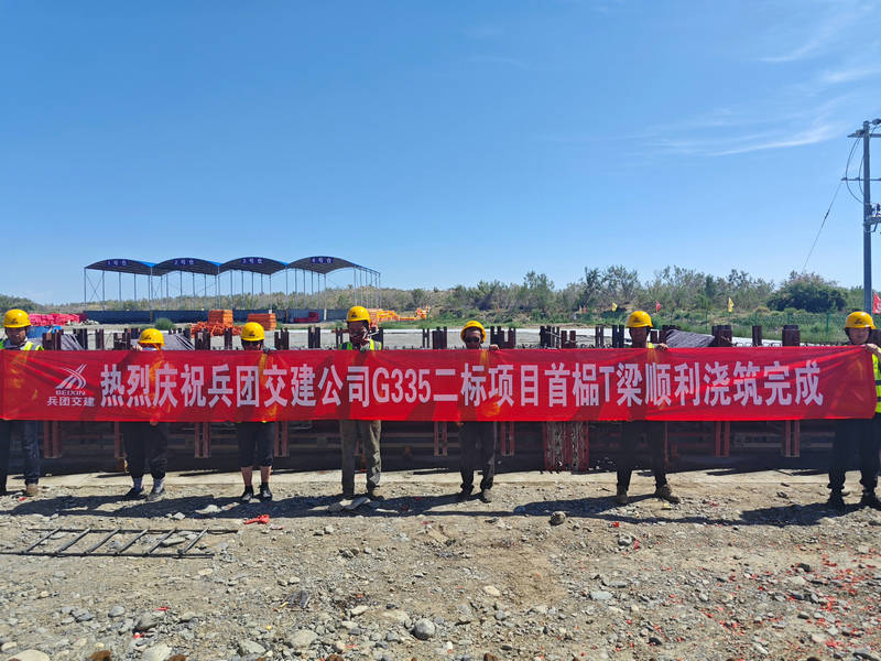 石河子訊(通訊員 劉嘉俊 李宇通)7月23日,伴隨著現(xiàn)場(chǎng)一陣鞭炮聲響,北新路橋集團(tuán)兵團(tuán)交建公司第八師G335二標(biāo)項(xiàng)目首榀T梁順利澆筑完成,這標(biāo)志著該項(xiàng)目橋梁工程建設(shè)取得了重要階段性的成果。