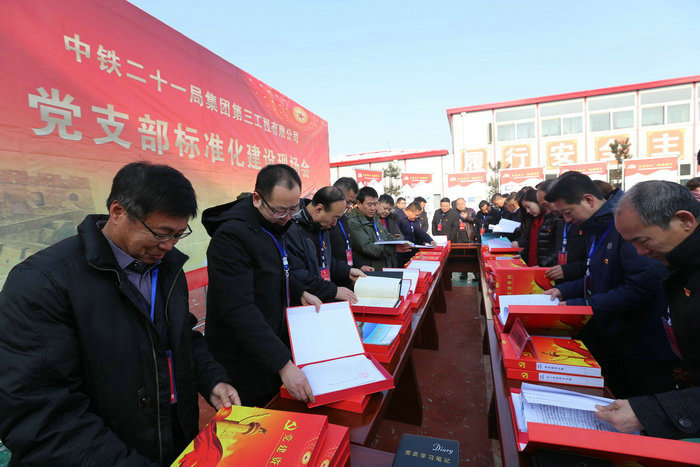 中鐵二十一局三公司黨委組織公司所屬各黨支部(工委)書記、副書記,機關黨群部門人員、項目黨員代表共70余人到平天高速項目部,就項目基層黨支部標準化建設工作進行了現(xiàn)場觀摩。