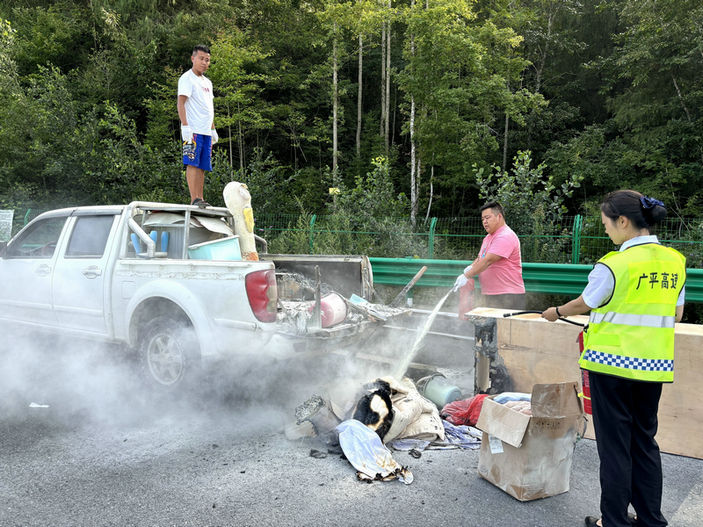 當(dāng)日17時28分,一輛皮卡車行駛至北新路橋集團(tuán)承建的S18廣平高速公路樂安收費(fèi)站出口,當(dāng)班收費(fèi)員鄒金芝發(fā)現(xiàn)其后車廂冒出濃煙、且有火苗若隱若現(xiàn),立即通過手勢、呼喊其駛出收費(fèi)島、靠邊停車、人員下車,同時報告監(jiān)控中心。收到火情信息的站管人員董利萍、孫麗攜帶手持式滅火器迅速趕到現(xiàn)場,一邊對火勢進(jìn)行壓制,一邊指導(dǎo)司乘人員卸載后車廂物品、清查火源,經(jīng)10多分鐘、連續(xù)使用4具手持式滅火器進(jìn)行撲救,車輛基本保住,所載貨物大部挽回,未造成任何人員傷亡。