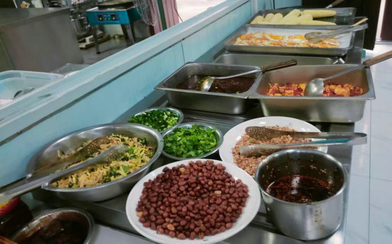 項目部食堂做成了鬧市一樣頂紅的美食餐館