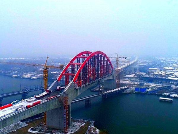 鋼管拱弦管混凝土灌注施工難度大、技術要求高,采用汽車泵和車載地泵接力的方式將混凝土泵送至約60米高空,要同時確保混凝土坍落度達標,灌注連續(xù)性、灌注養(yǎng)護溫度控制在零下7攝氏度~5攝氏度。