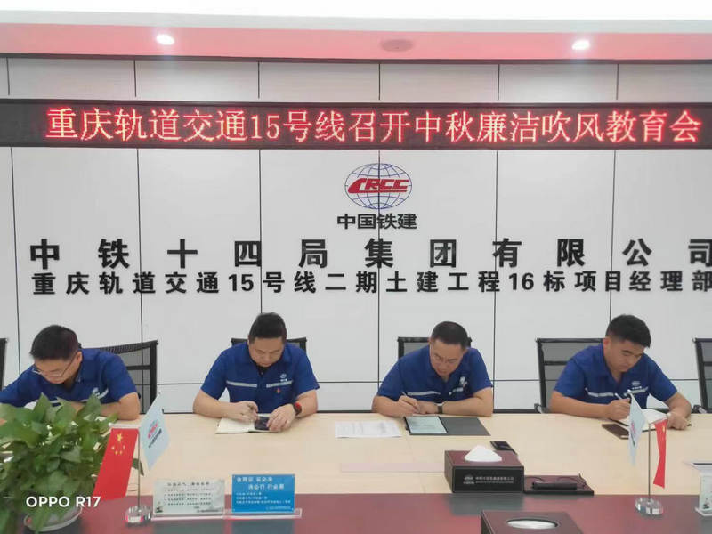 中秋將至,廉潔過節(jié)。8月19日,中鐵建重慶軌道交通15號(hào)線二期總承包部16標(biāo)項(xiàng)目黨支部召開中秋廉潔吹風(fēng)教育會(huì),為廉潔過中秋注射了“預(yù)防針”。