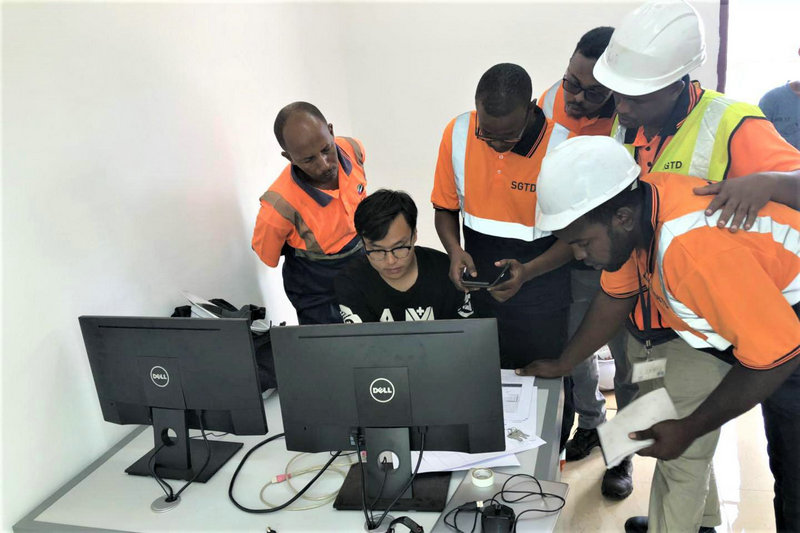圖三、中鐵建大橋局電氣化公司吉布提DCT鐵路三電項(xiàng)目人員培訓(xùn)當(dāng)?shù)貥I(yè)主進(jìn)行箱變遠(yuǎn)動(dòng)控制軟件使用