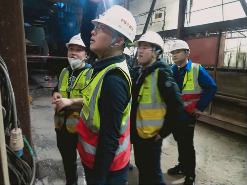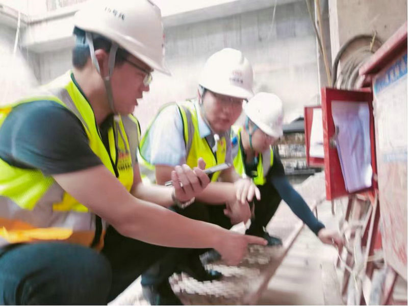 項(xiàng)目副經(jīng)理宋利(左三)在現(xiàn)場(chǎng)檢查