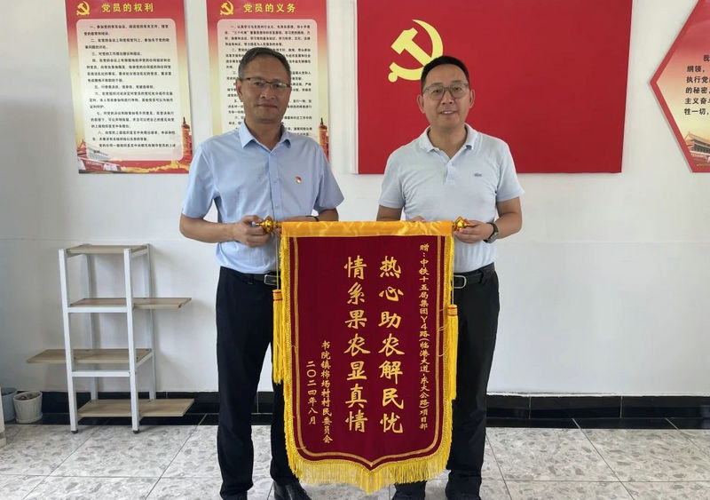 最后,書院鎮(zhèn)黨委委員、紀委書記蔡峰對項目進場以來積極助力鄉(xiāng)村振興,熱心幫助當?shù)乩щy村民,彰顯央企責任的作為表示了感謝,并向項目贈送了錦旗,期望雙方今后繼續(xù)緊密協(xié)作、優(yōu)勢互補、相互促進,共同為臨港新片區(qū)交通建設事業(yè)及書院鎮(zhèn)的發(fā)展貢獻力量。