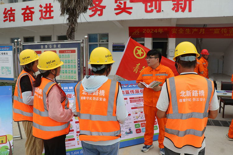 安徽宿固4標(biāo)項目青年突擊隊圍繞工程項目建設(shè),立足崗位積極投身安全生產(chǎn)工作,組織開展“安全生產(chǎn)大家談”“班前會”“以案說法”等交流學(xué)習(xí)活動,為一線職工和工人普及安全生產(chǎn)知識,并積極參與全線安全巡查活動,及時發(fā)現(xiàn)并消除安全隱患,為生產(chǎn)建設(shè)提供堅實的安全保障。安全生產(chǎn)月期間,通過設(shè)立咨詢臺、擺放宣傳展板、發(fā)放宣傳手冊傳單等方式,積極開展“6·16”安全咨詢?nèi)栈顒?,針對大家關(guān)心的安全生產(chǎn)、緊急情況逃生通道等問題,運用事故案例分析,面對面進(jìn)行細(xì)致解答,向大家普及應(yīng)急知識,提升安全技能,把安全生產(chǎn)與日常安全知識切實送到一線干部職工心中。