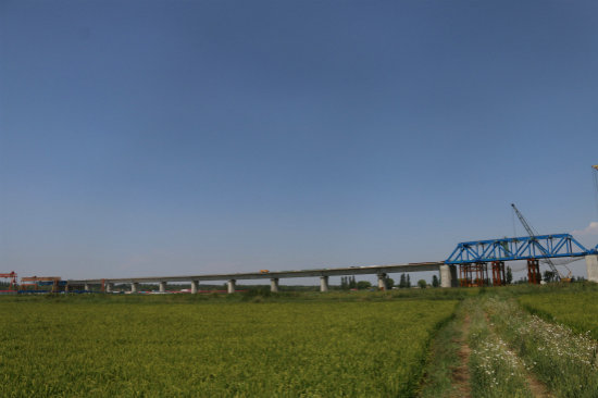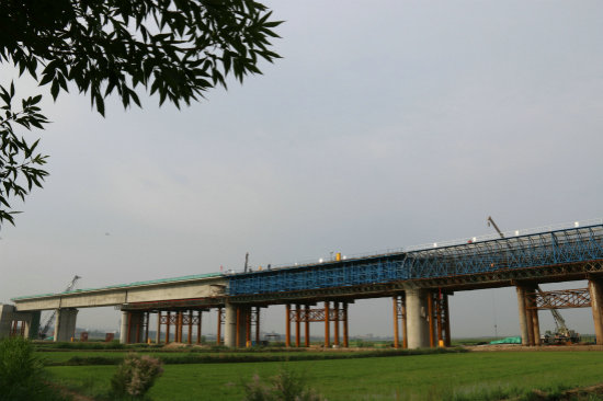 圖一、施工中的銀川機(jī)場(chǎng)黃河特大橋56米現(xiàn)澆簡(jiǎn)支箱梁