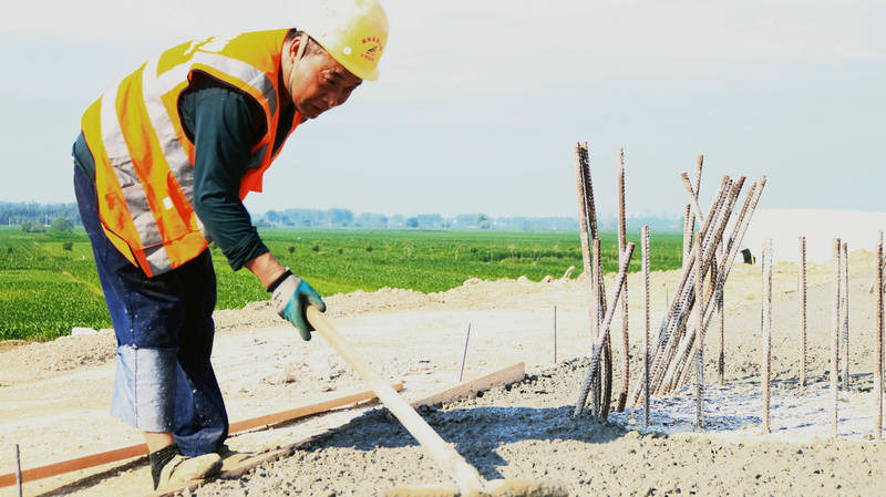 高溫下,工人頂著烈日,認(rèn)真按照施工流程進(jìn)行操作。汗水如斷了線的珠子,從額頭滑落,衣服早已汗透,記錄著“作戰(zhàn)”瞬間。
