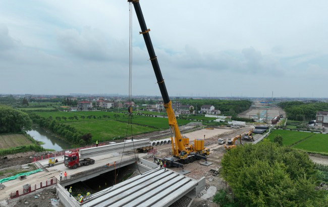 鐵路工程建設(shè)網(wǎng)訊(通訊員 張聰聰) 近日,隨著最后一片長(zhǎng)23米,重45噸的空心板梁精準(zhǔn)落位,由中鐵十五局承建的上海Y4路(大蘆線-臨港大道)道路新建工程項(xiàng)目蘇橋河橋右幅梁板順利安裝完成,為后續(xù)路基路面施工奠定了堅(jiān)實(shí)基礎(chǔ)。