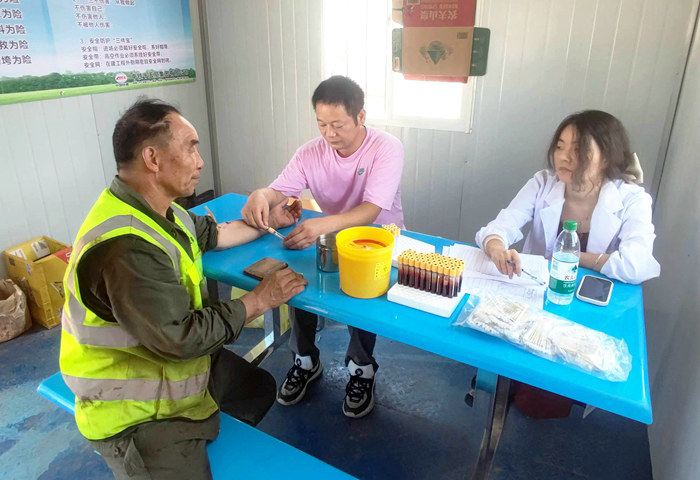 鐵路工程建設(shè)網(wǎng)訊 中秋的常山秋色漸濃,但仍舊熱浪滾滾。從9月10日起,中鐵十五局常山江航電樞紐項(xiàng)目邀請(qǐng)常山縣疾控中心和青石鎮(zhèn)衛(wèi)生院醫(yī)務(wù)人員,陸續(xù)對(duì)600多名員工抽血化驗(yàn),全面進(jìn)行一次吸血蟲病、登革熱病排查、防治工作,保障員工生命健康。