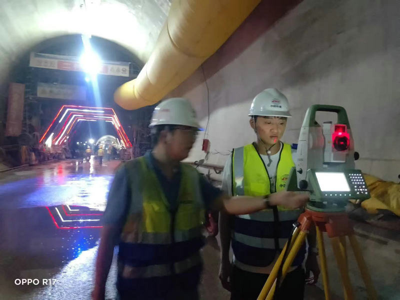 測量人員在中梁山隧道進口精心標高復(fù)測