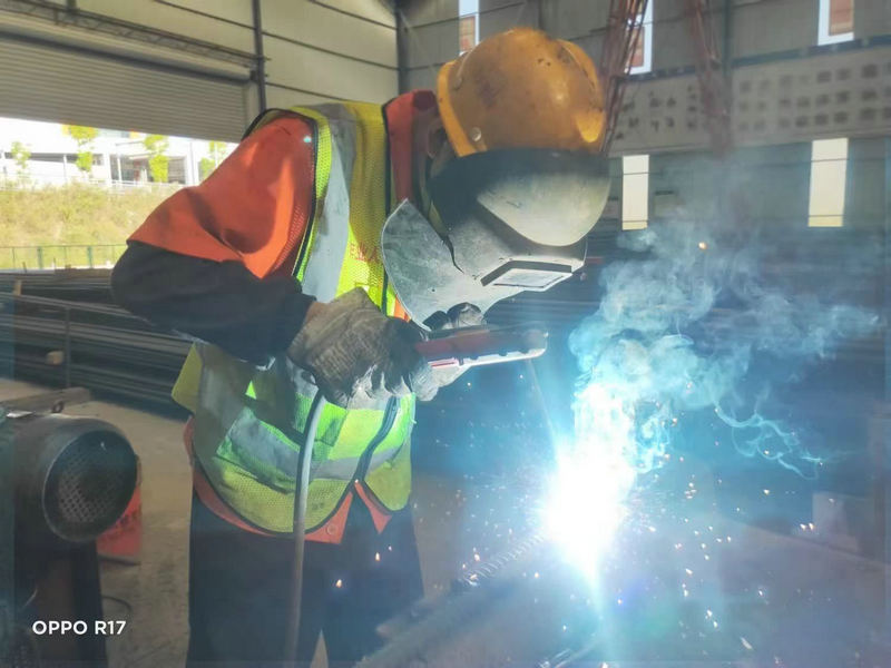 鋼筋加工車間避開高溫是時段 焊花閃閃