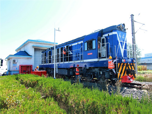 ?。ㄗT帥)9月22日,秋分時節(jié)的蒙西高原秋陽燦爛,天空瓦藍(lán)。上午9時55分,伴著一聲長鳴,中鐵一局集團軌道運營(新運)公司準(zhǔn)格爾鐵路公司配屬DF12型0291號內(nèi)燃機車緩緩駛?cè)雵苣掀簷z修整備線間。