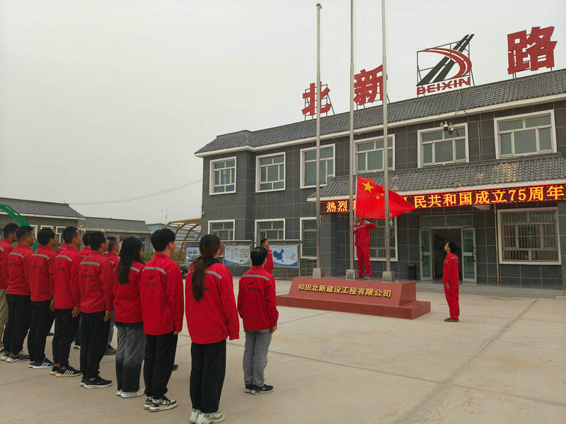 和田訊 (通訊員 譚彩蓉)10月1日,北新路橋集團(tuán)北新巖土和田分公司舉行了“升國(guó)旗”儀式,在職員工共計(jì)30人參加,共同慶賀祖國(guó)75歲華誕,祝愿?jìng)ゴ笞鎳?guó)更加繁榮富強(qiáng)。