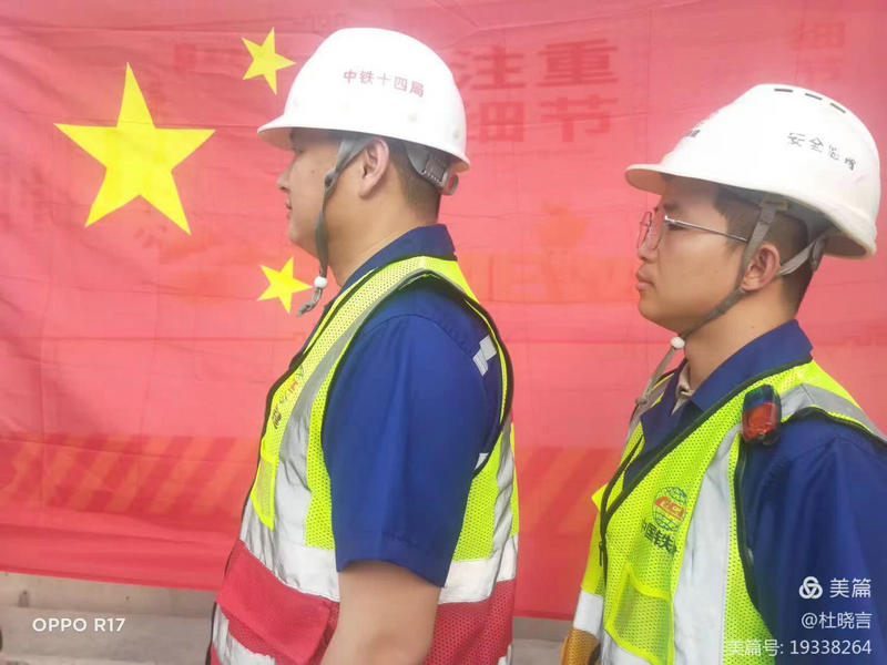 【項(xiàng)目黨支部書記韓崇生與先進(jìn)工作者閆其敢開展“愛國旗、跟黨走”留影活動】
