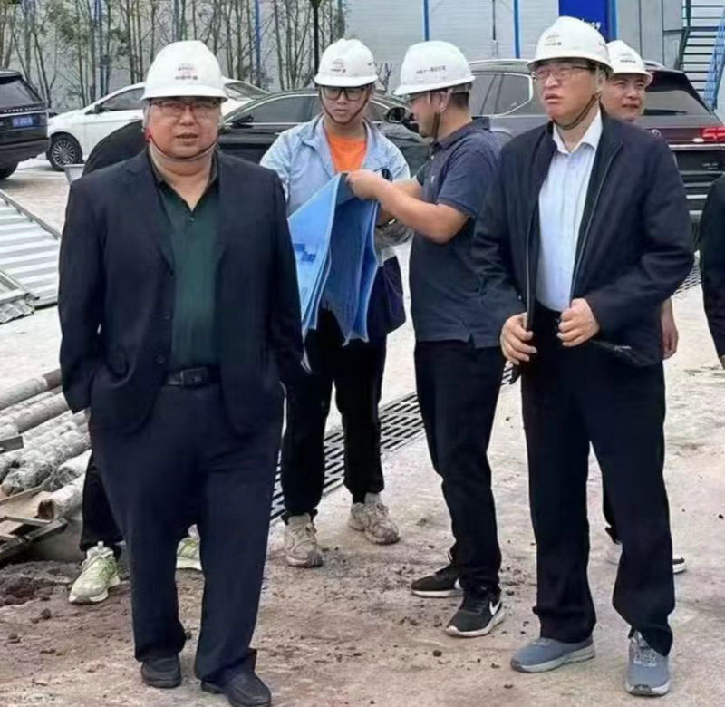 總承包部指揮長李兵(左1)、黨工委書記王向平(右1)在現(xiàn)場巡查督導(dǎo)工作