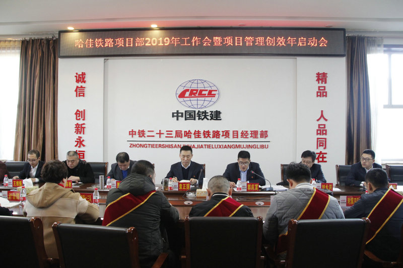 2月23日上午,中鐵二十三局二公司哈佳項目部在八樓會議室召開了2019年工作會暨項目管理創(chuàng)效年啟動會。會議深刻總結(jié)了2018年取得的成績和存在的不足,部署了2019年工作;13名骨干員工和6名施工隊負責人在大會上做了交流發(fā)言;會議由常務副經(jīng)理郭慶富主持。