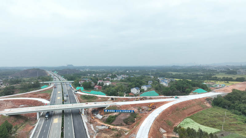 滬昆高速梨東改擴(kuò)建B1標(biāo)項(xiàng)目航拍橫峰南互通施工現(xiàn)場照片