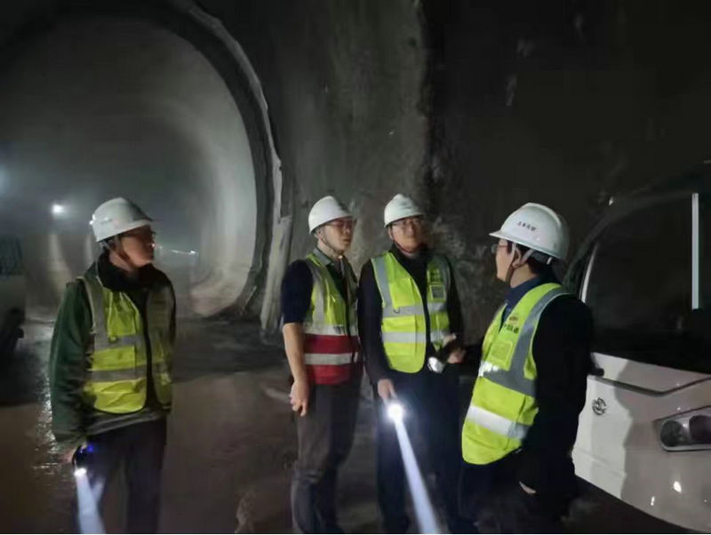 總承包部黨工委書記王向平(右2)在隧道內(nèi)夜巡