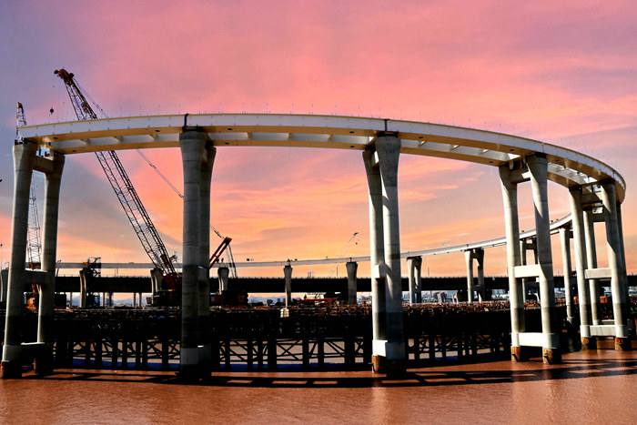 此次榮獲二等獎(jiǎng)的作品《交相輝映》,是他在杭甬項(xiàng)目施工現(xiàn)場(chǎng)精心捕捉的一個(gè)畫(huà)面。夕陽(yáng)下的濱?;ネㄅc火紅的夕陽(yáng)、海水等自然風(fēng)光交相輝映,多色調(diào)的圖景令人神往、美不勝收。這幅作品不僅展現(xiàn)了建筑之美,更融入作者對(duì)大自然的無(wú)限熱愛(ài),是技術(shù)與藝術(shù)的完美結(jié)合。