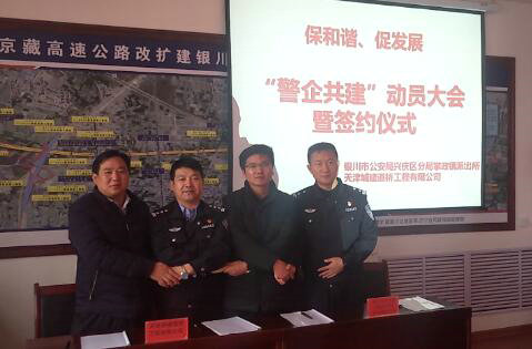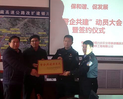 天津城建道橋京藏公路JZ13標(biāo)項(xiàng)目部與銀川市公安局掌政派出所“警企共建聯(lián)系點(diǎn)”揭牌