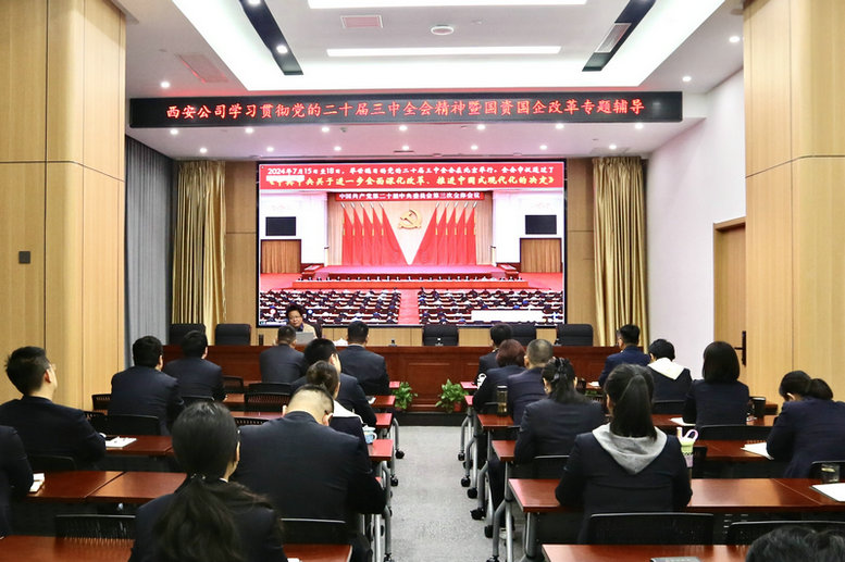 為深入學(xué)習(xí)好貫徹好黨的二十屆三中全會精神,深刻領(lǐng)會和把握進一步全面深化改革的主題、重大原則、重大舉措、根本保障,引導(dǎo)全體黨員職工統(tǒng)一思想、凝聚共識。近日,中鐵物貿(mào)集團西安有限公司黨委開展學(xué)習(xí)貫徹黨的二十屆三中全會精神暨國資國企改革專題輔導(dǎo)講座,公司50余名黨員、積極分子采取現(xiàn)場+視頻的方式參加本次學(xué)習(xí)。