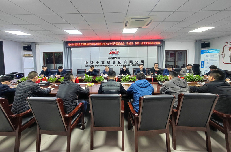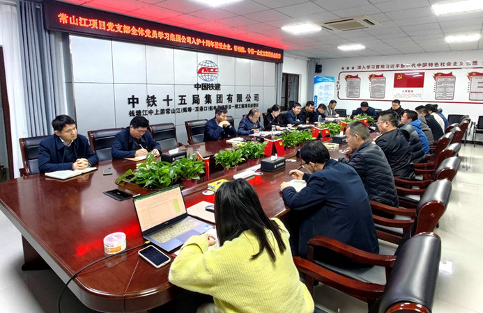 本網(wǎng)訊(呂奎元李小亞劉利)11月27日晚上,中鐵十五局常山江項(xiàng)目黨支部組織全體黨員學(xué)習(xí)貫徹集團(tuán)公司“入滬十周年”暨“愛企業(yè)、講誠(chéng)信、爭(zhēng)第一”企業(yè)文化懇談會(huì)精神,公司副總經(jīng)理兼常山江項(xiàng)目黨支部書記、項(xiàng)目負(fù)責(zé)人黃偉主持。