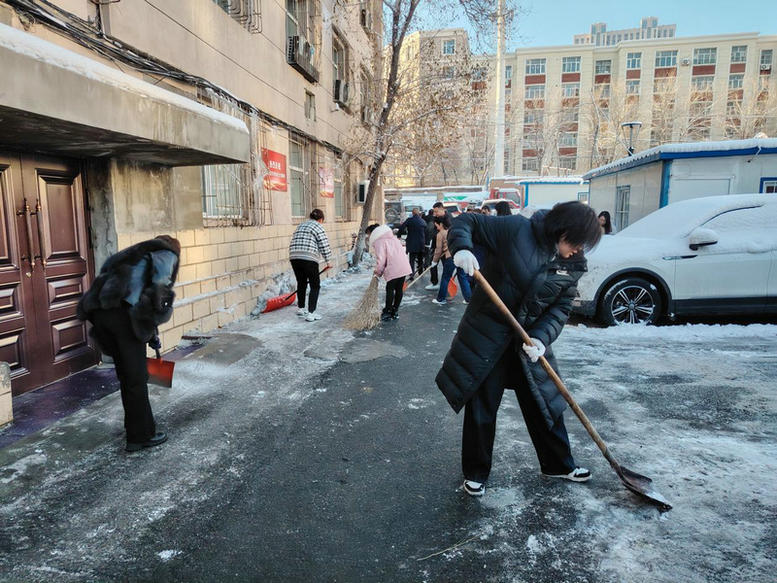 職工們不畏嚴寒、不怕辛苦,人人揮舞著鐵鍬、雪鏟和笤帚對區(qū)域內(nèi)積雪和冰面進行清掃,大家齊心協(xié)力、配合默契,干得熱火朝天,一個個忙碌的身影構(gòu)成了一道亮麗的風景線,經(jīng)過一個小時多的奮戰(zhàn),樓前樓后干干凈凈,清掃出了一條暢通無阻的道路。雖然室外溫度很低,但大家勞動的熱情和團結(jié)的力量讓這個冬日變得格外溫暖。此次清雪活動充分展現(xiàn)了職工們勇于奮斗和團結(jié)協(xié)作的精神,進一步增強了團隊凝聚力和向心力。