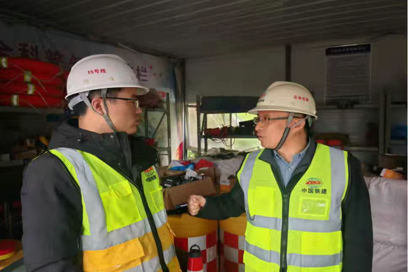 總承包部分管安全工作副指揮長李燕斌(右)在中梁山隧道進口檢查安全消防工作(高長兵攝)