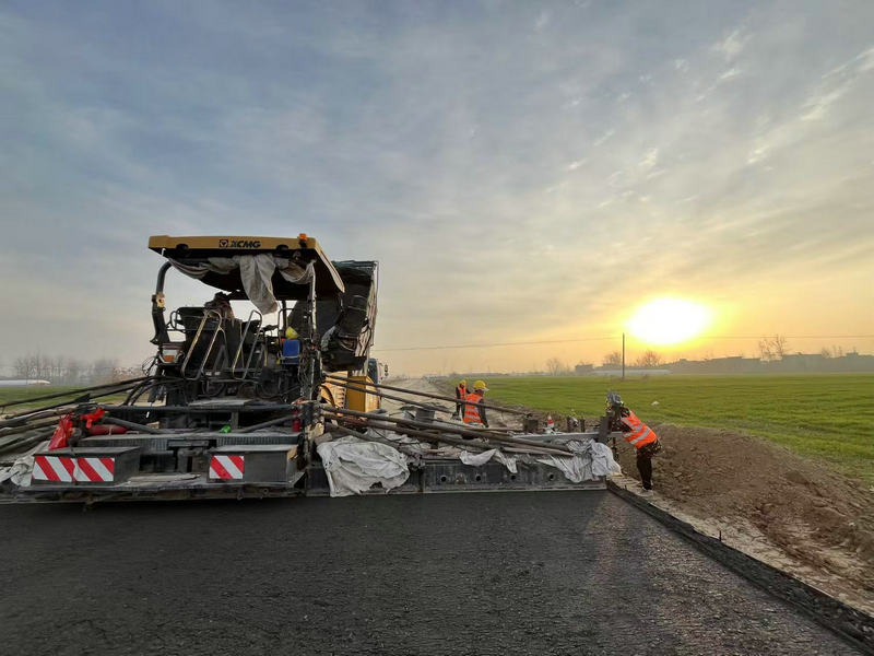圖說:2024年12月14日安徽固鎮(zhèn)EPC市政項(xiàng)目緯四東路水泥穩(wěn)定碎石下基層攤鋪施工 善忠俊攝