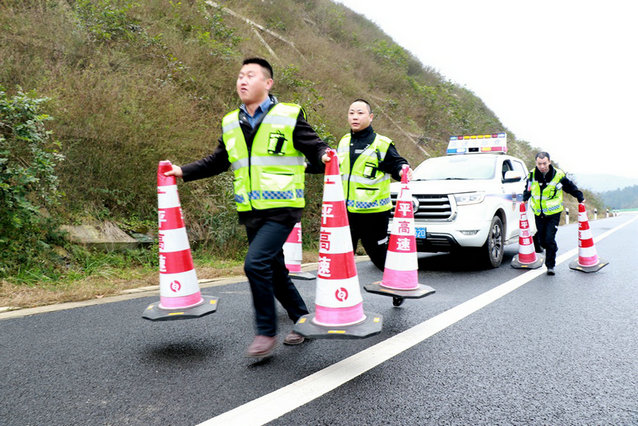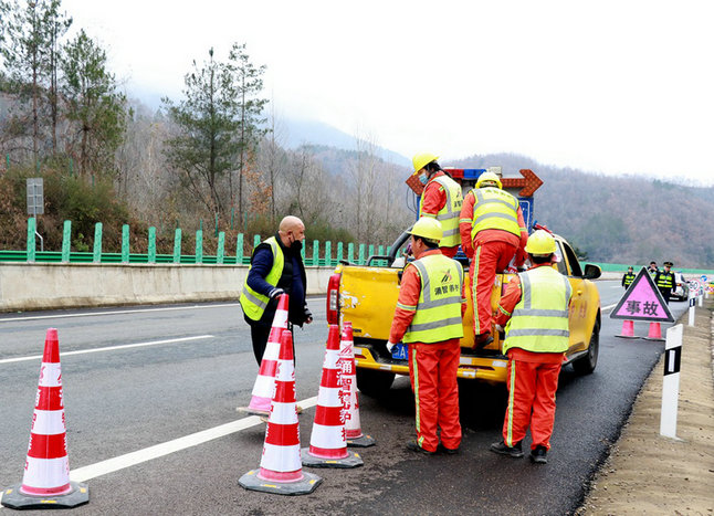 接到報(bào)警電話后,廣平高速監(jiān)控中心立即調(diào)出事故現(xiàn)場(chǎng)畫(huà)面,經(jīng)初步研判后啟動(dòng)應(yīng)急處置預(yù)案;“一路三方”值班領(lǐng)導(dǎo)迅速到達(dá)監(jiān)控中心聯(lián)合指揮,封控、救援、清障等應(yīng)急力量緊急向事故現(xiàn)場(chǎng)開(kāi)進(jìn)。封控小組先行一步,臨時(shí)封閉高速入口,在事故現(xiàn)場(chǎng)后方設(shè)置警示標(biāo)志,為后續(xù)行動(dòng)留下安全空間;救援小組按照“先人、再車(chē)、后設(shè)施”順序,檢查人員傷亡和車(chē)輛、路面設(shè)施受損情況,做好現(xiàn)場(chǎng)應(yīng)急處理和后送醫(yī)院準(zhǔn)備;清障小組到達(dá)后,拖走事故車(chē)輛,人工與機(jī)械結(jié)合清理路面積雪結(jié)冰、布撒融雪劑,維修護(hù)欄。