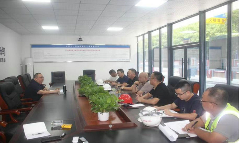 總承包部指揮長(zhǎng)李兵(左)在18標(biāo)禮學(xué)路站召開(kāi)盾構(gòu)施工協(xié)調(diào)會(huì)議